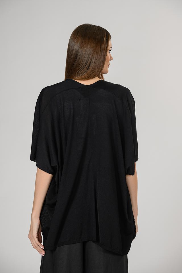 Чёрный кардиган Giorgio Grati с кружевными вставками – стильное и комфортное решение для создания многослойных образов. Изделие выполнено из мягкой вискозы с добавлением хлопка, полиамида и полиэстера. Состав: вискоза 40%, хлопок 29%, полиамид 22%, полиэстер 9%
