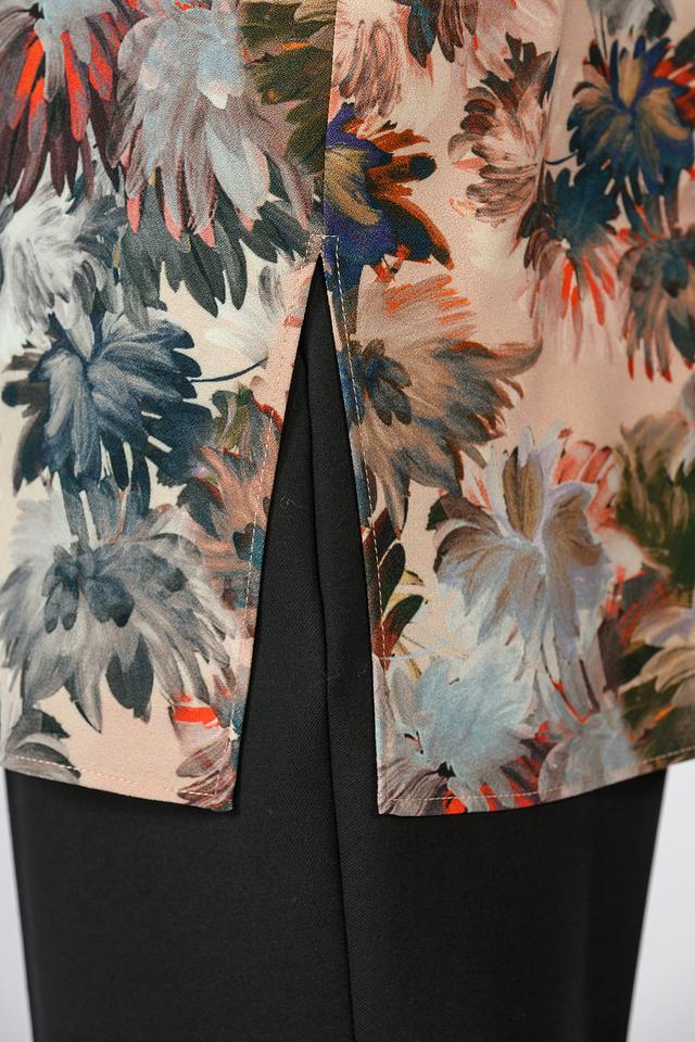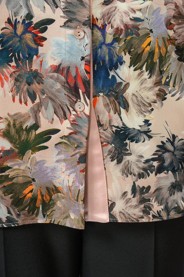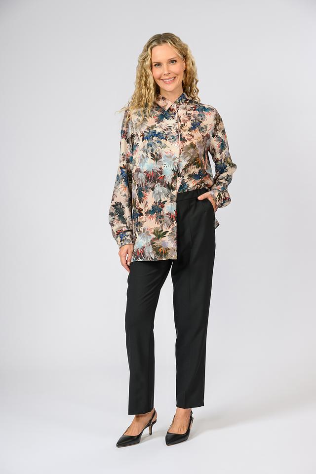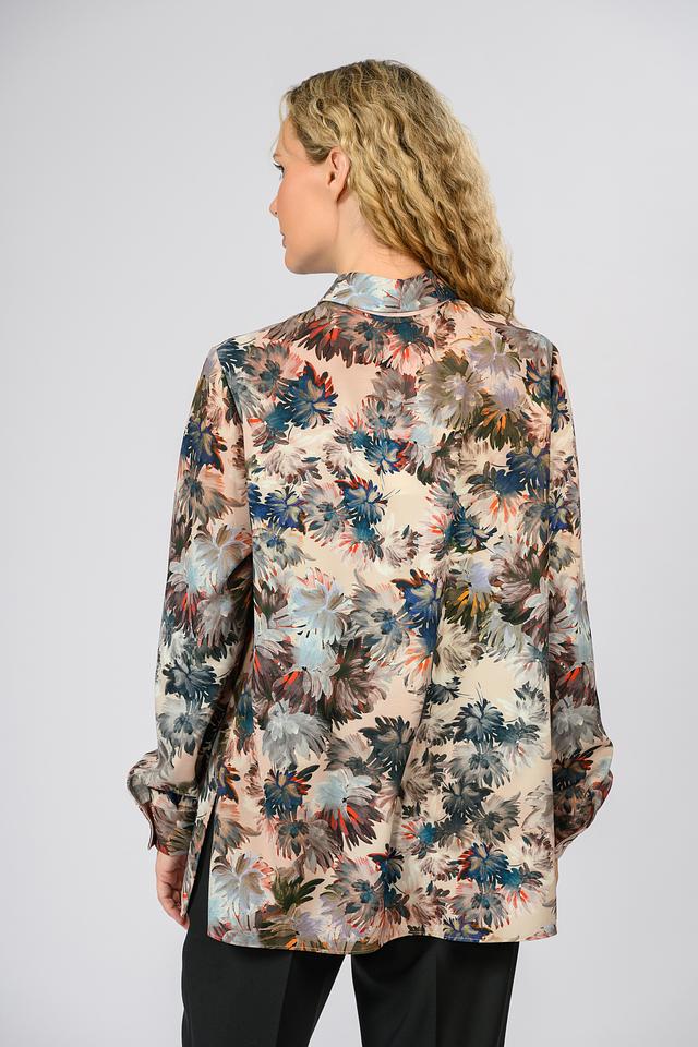 Эта элегантная блуза от Giorgio Grati выполнена из легкой и приятной к телу ткани, состоящей из 92% полиэстера и 8% эластана. Преобладающий цвет блузы – бежевый, но она украшена ярким и красочным цветочным принтом, включающим оттенки синего, красного, зеленого и коричневого.