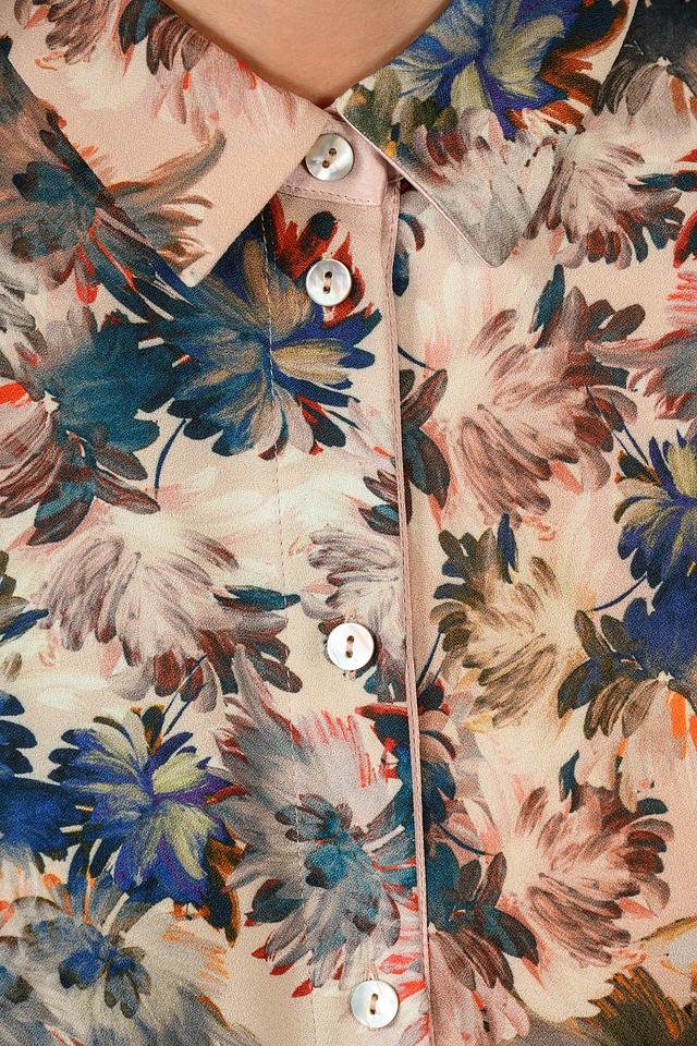 Женская блуза Giorgio Grati бежевого цвета с ярким цветочным принтом станет стильным дополнением к вашему гардеробу. Модель с длинными рукавами и классическим воротником застегивается на пуговицы. Состав: полиэстер 92%, эластан 8%