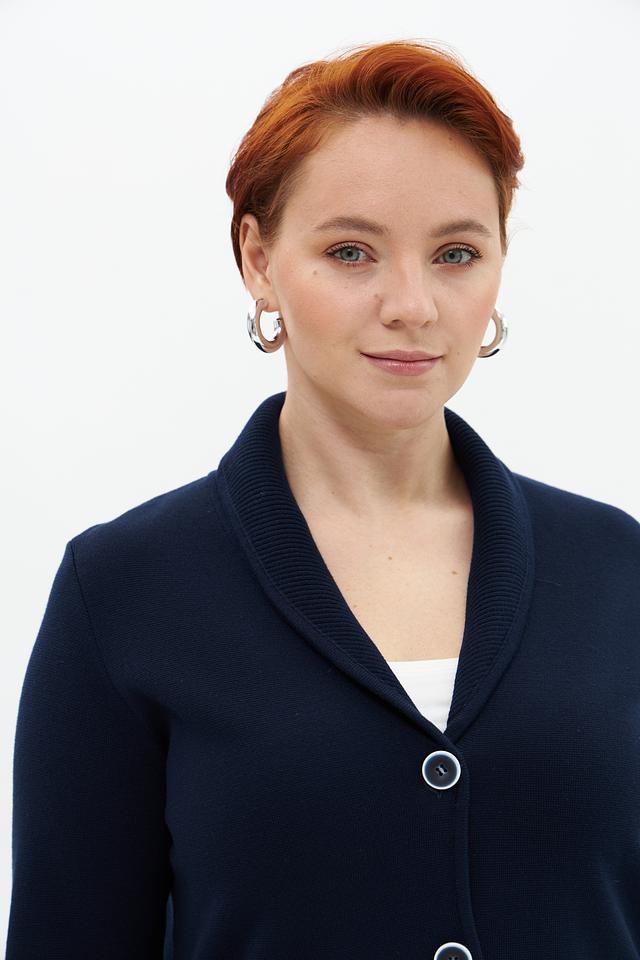 Вязаный жакет Gollehaug тёмно-синего цвета – стильное и комфортное решение для создания повседневных образов. Модель выполнена из мягкого трикотажа с добавлением акрила, имеет классический крой с отложным воротником и застежкой на пуговицы. Состав: хлопок 50%, полиакрил 50%