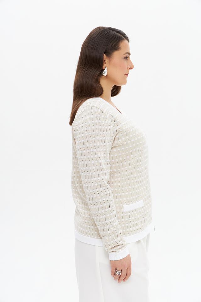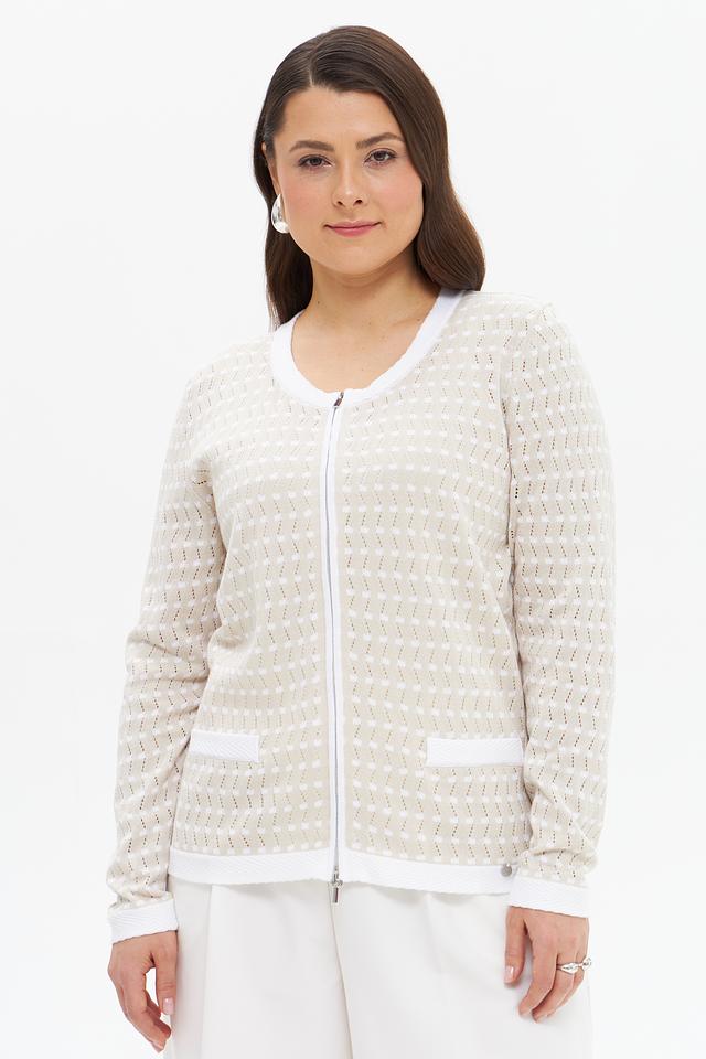 Бежевый жакет Gollehaug с геометрическим узором и белой отделкой станет стильным дополнением к вашему гардеробу. Модель застегивается на молнию и имеет короткую длину, что делает ее универсальной для создания различных образов. Состав: хлопок 50%, полиакрил 50%