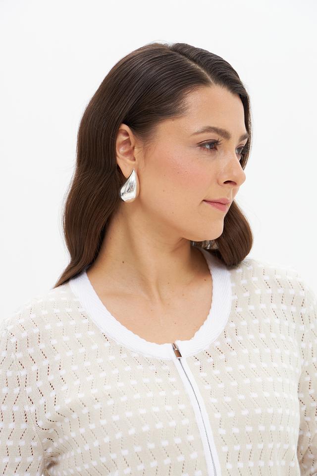 Этот жакет от Gollehaug выполнен в бежевом цвете и украшен оригинальным геометрическим узором. Короткий крой и застежка на молнию делают его практичным и удобным в носке.
