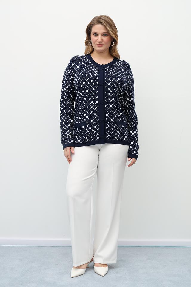 Синий жакет Gollehaug с оригинальным геометрическим узором. Изготовлен из мягкого трикотажа с добавлением модала для комфорта и приятных тактильных ощущений. Застежка на пуговицы. Состав: модал 45%, полиакрил 37%, полиамид 18%