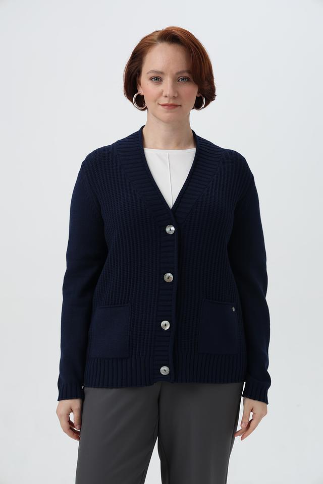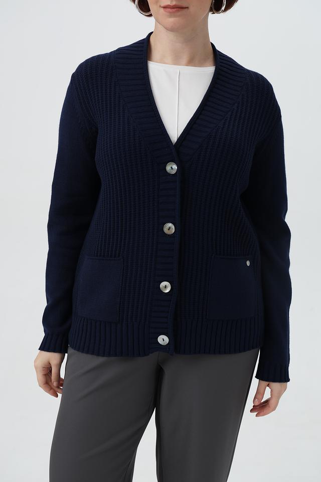 Представляем элегантный вязаный жакет от бренда Gollehaug. Эта модель выполнена в тёмно-синем цвете и станет прекрасным дополнением к вашему гардеробу.