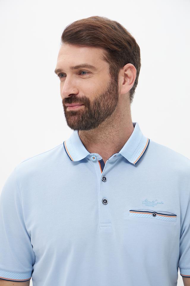 Стильное поло Monte Carlo голубого цвета выполнено из 100% хлопка, обеспечивающее комфорт и воздухопроницаемость. Классический крой и аккуратный декор делают эту модель универсальным дополнением к вашему гардеробу. Состав: хлопок 100%