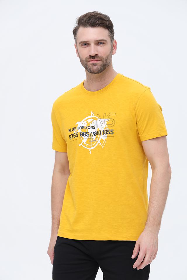 Жёлтая футболка Granchio с оригинальным принтом в морском стиле. Изготовлена из 100% хлопка, обеспечивающего комфорт и воздухопроницаемость. Отличный выбор для повседневного образа. Состав: хлопок 100%