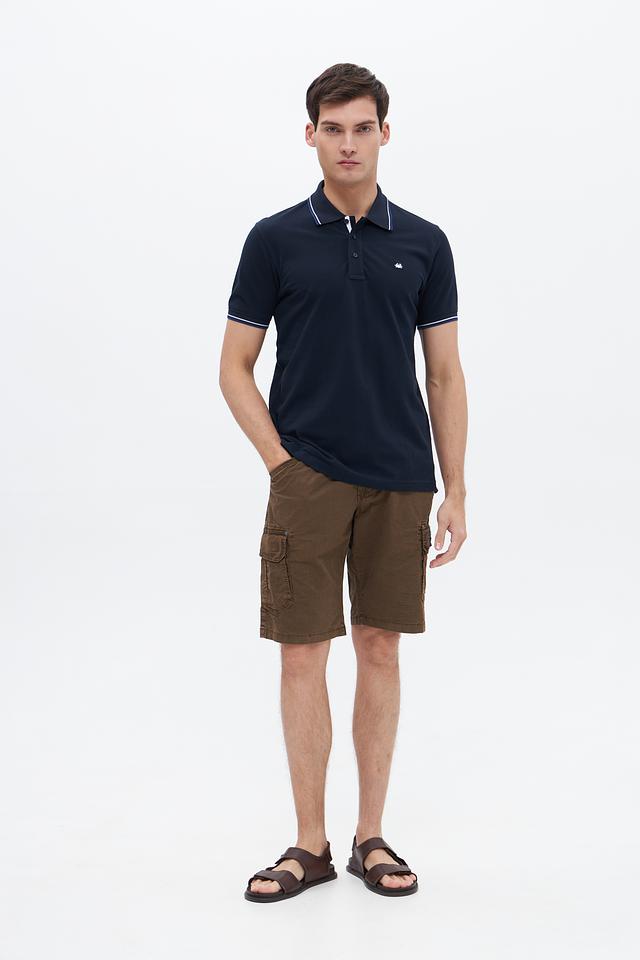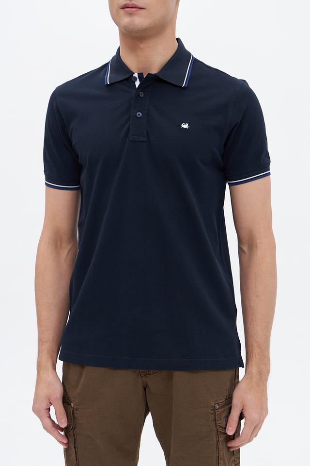 Мужское поло Granchio тёмно-синего цвета с белой полоской на воротнике и рукавах. Классический крой и 100% хлопковый состав обеспечивают комфорт и удобство в носке. Состав: хлопок 100%