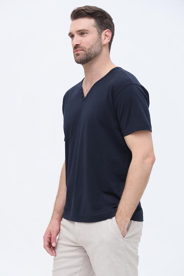 Мужская футболка Granchio темно-синего цвета с V-образным вырезом и короткой посадкой. Изготовлена из 100% хлопка, обеспечивающего комфорт и воздухопроницаемость. Отличный выбор для повседневного образа. Состав: хлопок 100%