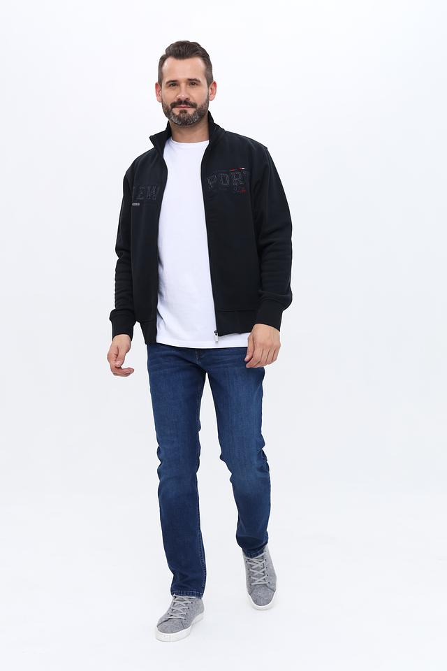 Кардиган имеет удобную застёжку на молнии, что позволяет регулировать степень тепла и создавать разные образы. На груди и рукавах размещены вышитые логотипы и надписи "NEW PORT", добавляющие изделию индивидуальность и стиль.