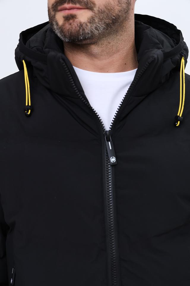 Куртка имеет стеганую текстуру, которая придает ей современный вид. Капюшон со шнурком обеспечивает дополнительную защиту от ветра и дождя. Застежка-молния позволяет быстро и удобно надевать и снимать куртку.