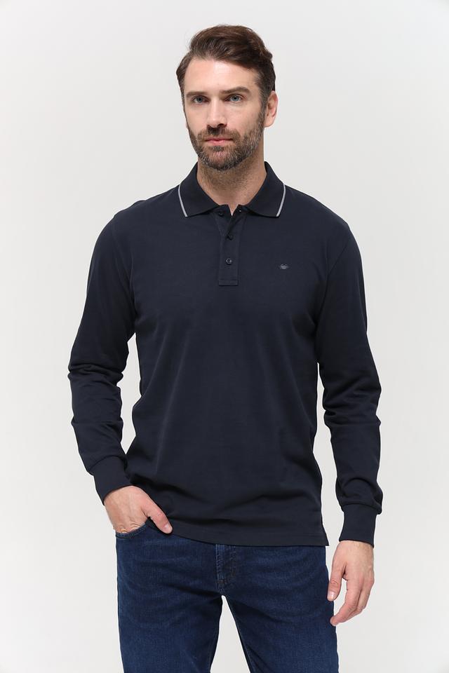 Мужское поло от бренда Granchio выполнено в классическом стиле с длинным рукавом. Основной цвет изделия – тёмно-синий, что делает его универсальным и подходящим для различных образов.