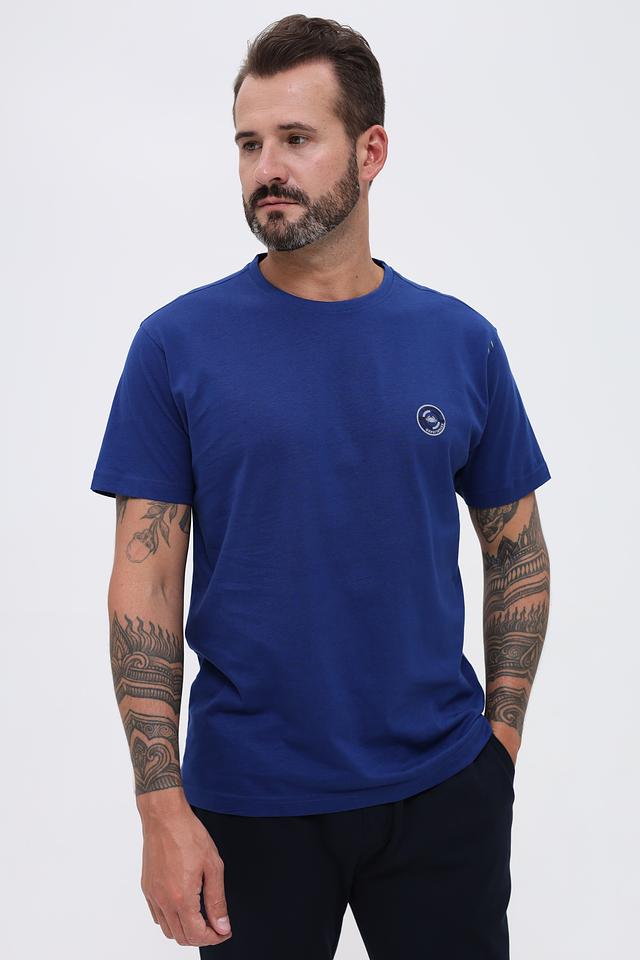 Синяя футболка Granchio из 100% хлопка — это удобная и стильная базовая вещь для повседневного гардероба. Футболка имеет короткий рукав и круглый вырез горловины, украшена небольшим логотипом бренда на груди. Состав: хлопок 100%