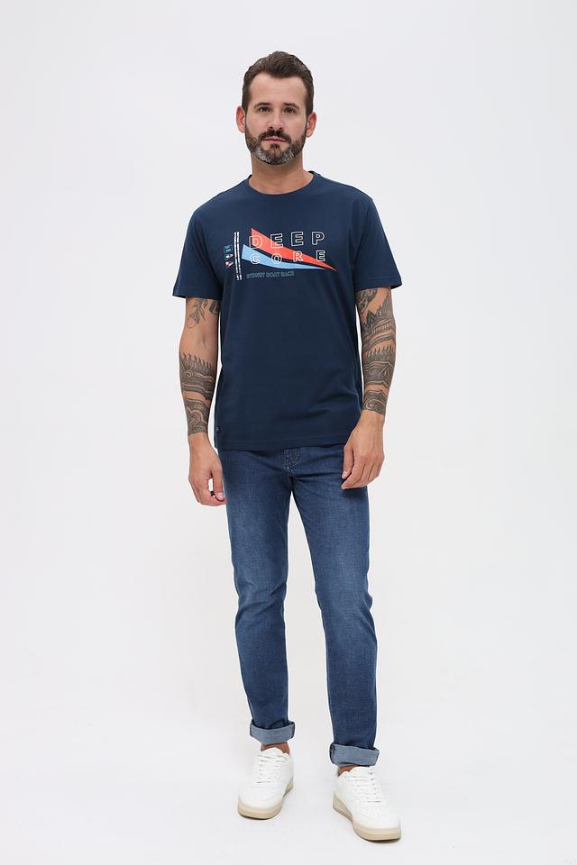 Мужская футболка Granchio синего цвета с ярким принтом "Deep Core" на передней части. Изготовлена из 100% хлопка, обеспечивая комфорт и воздухопроницаемость. Стильный дизайн и качественный материал делают эту футболку отличным выбором для повседневной носки. Состав: хлопок 100%