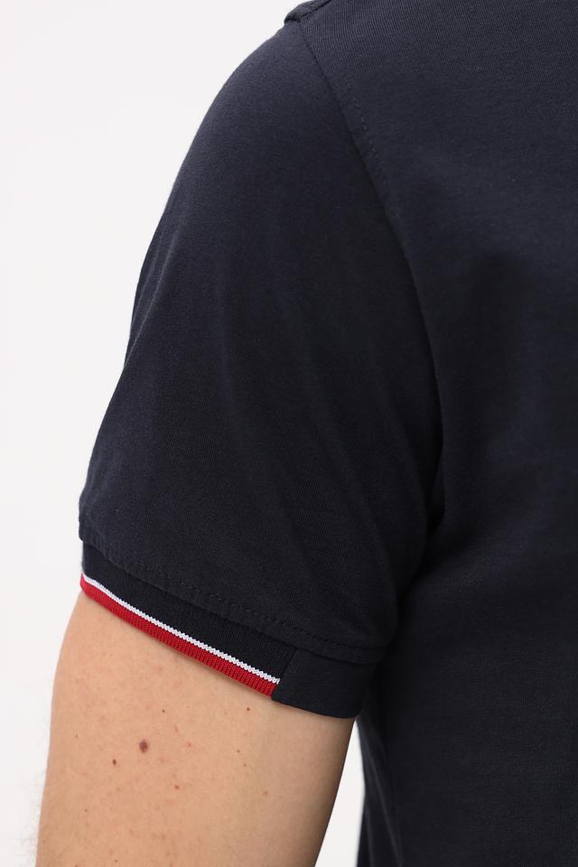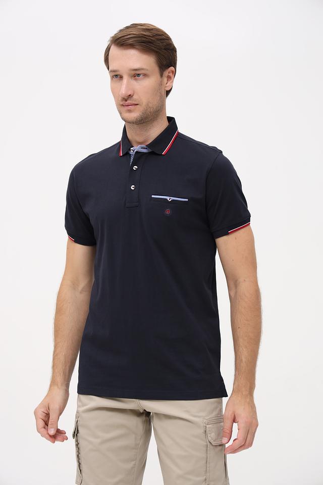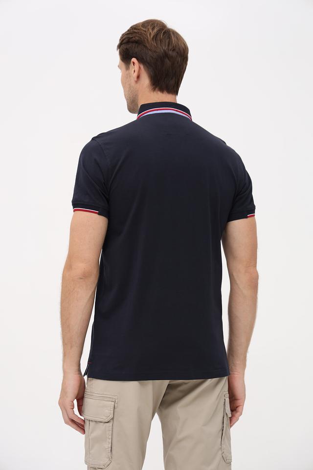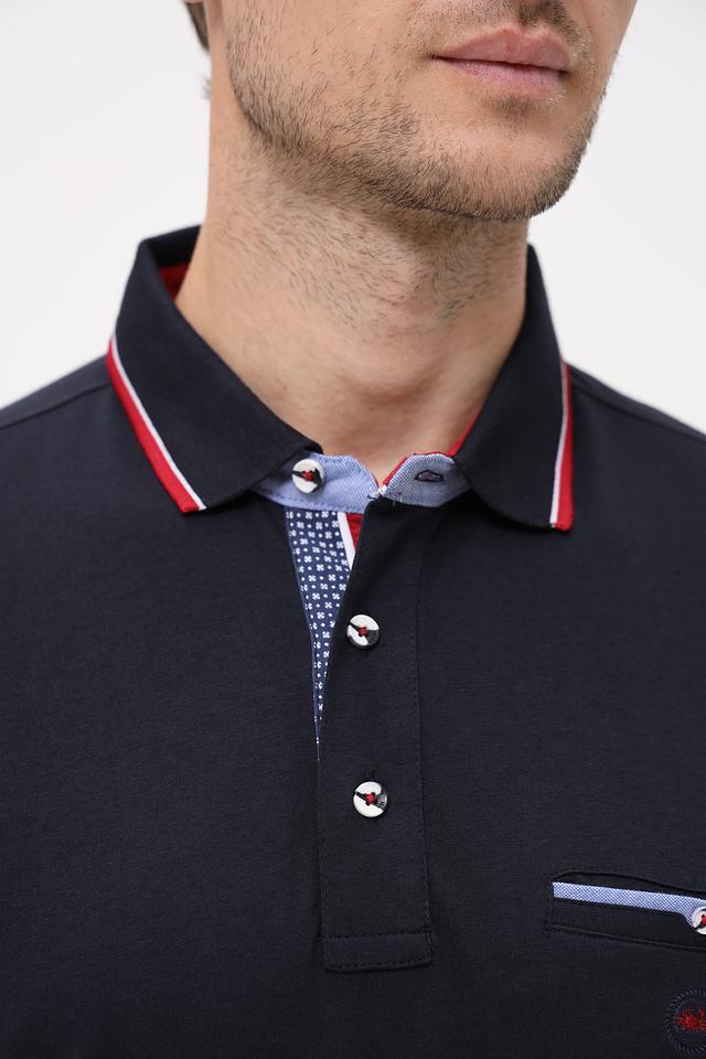 Мужское поло Granchio тёмно-синего цвета с красной и белой отделкой на воротнике и рукавах. Классический крой и натуральный хлопок обеспечивают комфорт и стиль. Состав: хлопок 100%