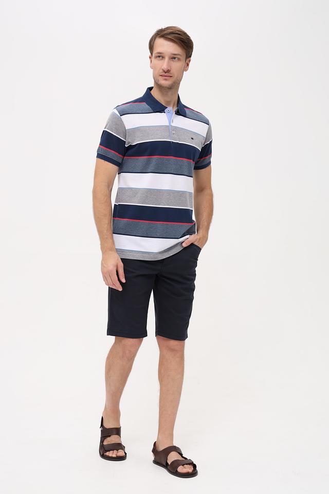 Мужское поло Granchio синего цвета с классическим дизайном в полоску. Изготовлено из сочетания хлопка и полиэстера, обеспечивающего комфорт и практичность. Отличный выбор для повседневного гардероба. Состав: хлопок 60%, полиэстер 40%