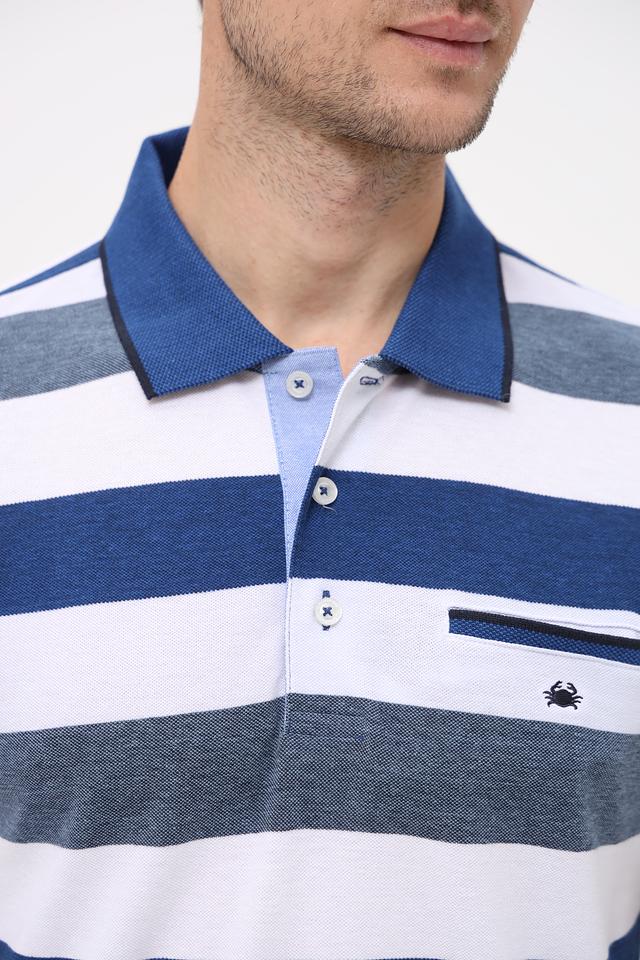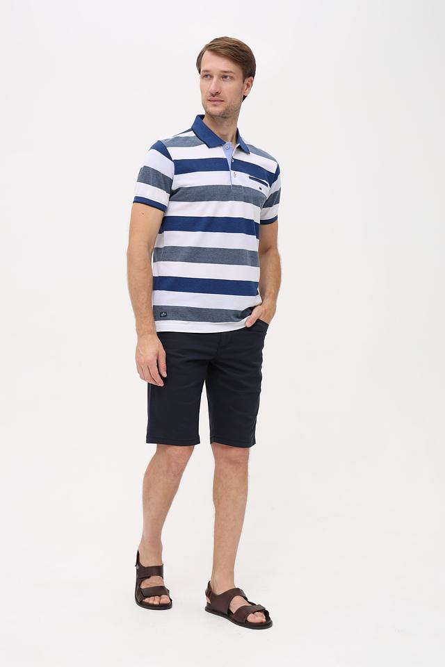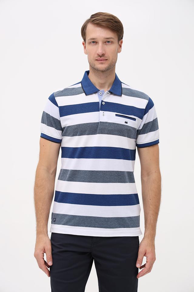 Мужское поло Granchio синего цвета с классическим дизайном в полоску. Изготовлено из сочетания хлопка и полиэстера, обеспечивающего комфорт и практичность. Отличается наличием нагружного кармана и логотипом бренда. Состав: хлопок 60%, полиэстер 40%