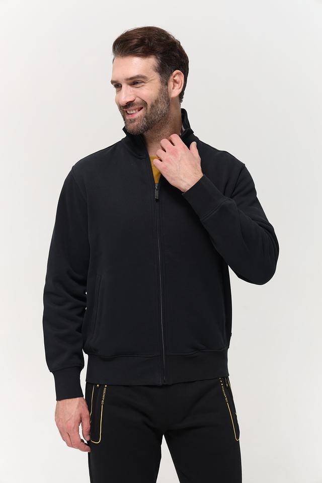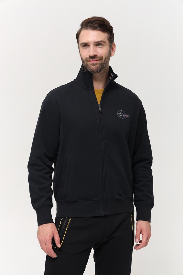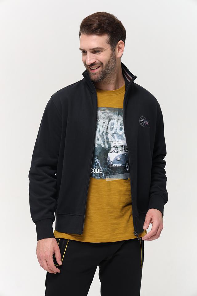 Мужской кардиган от бренда Granchio выполнен в классическом чёрном цвете. Модель имеет застёжку на молнии, воротник-стойку и два боковых кармана. Кардиган идеально подходит для создания многослойных образов в прохладную погоду.