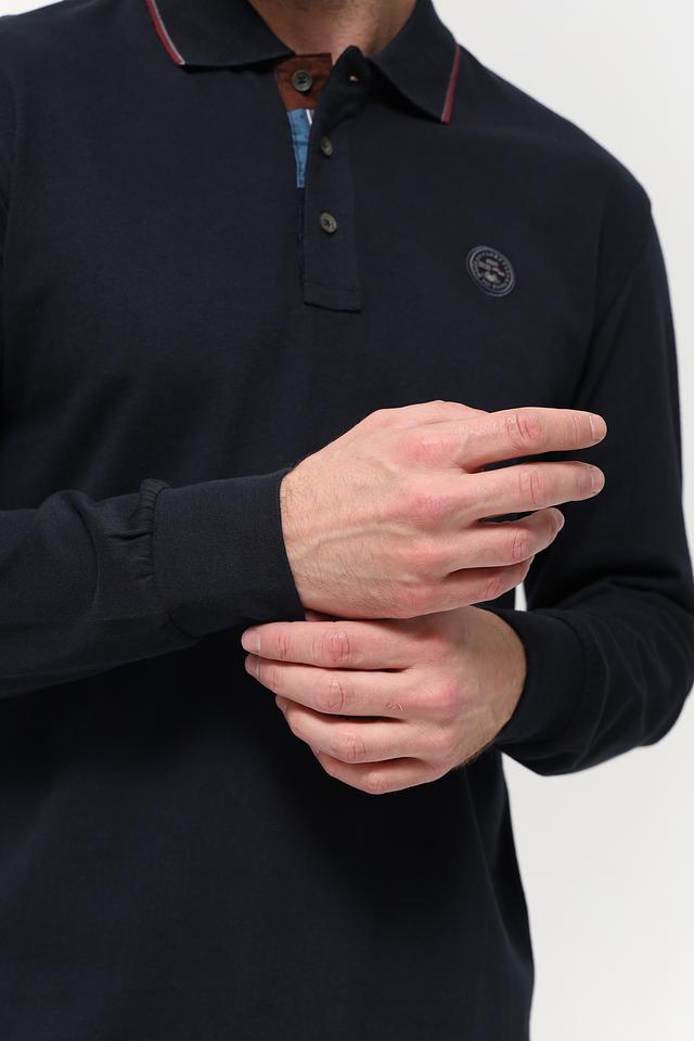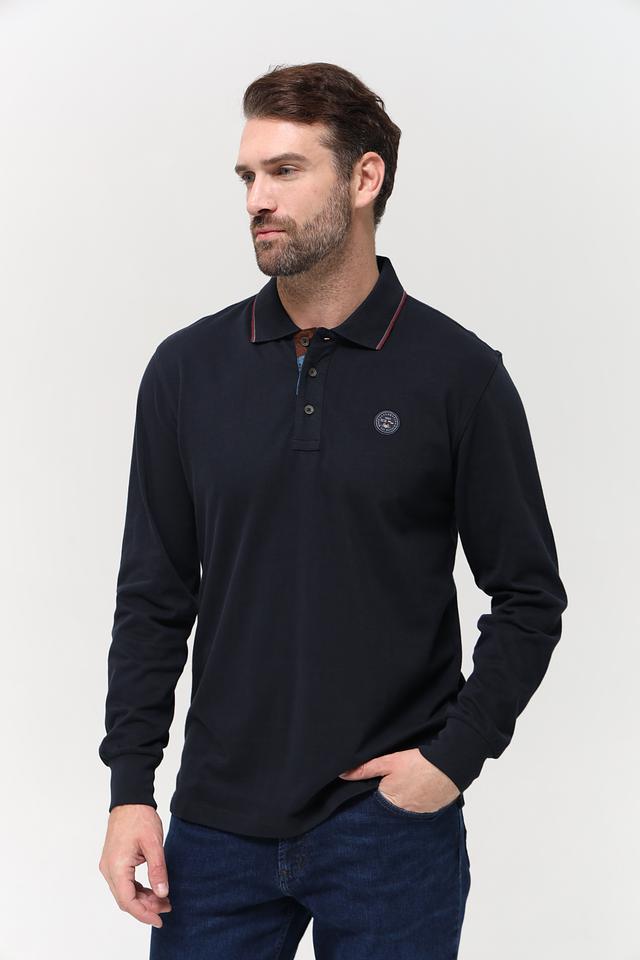 Мужское поло от бренда Granchio выполнено в тёмно-синем цвете. Изделие имеет длинный рукав, что делает его актуальным для прохладной погоды.