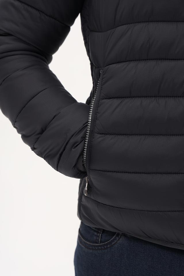 Куртка имеет стеганую текстуру, которая придает ей современный вид. Высокий воротник защищает шею от ветра, а молния позволяет быстро и легко застегнуть или расстегнуть куртку.