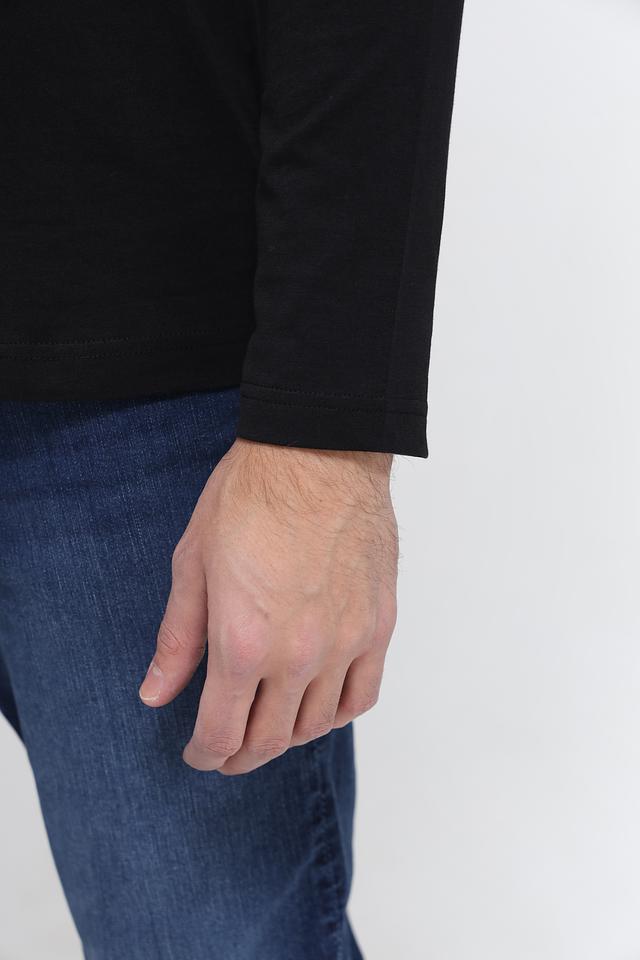 Лонгслив имеет однотонный чёрный цвет, который легко сочетается с другими элементами гардероба. Минималистичный дизайн без лишних деталей делает его универсальным и подходящим для любого случая.