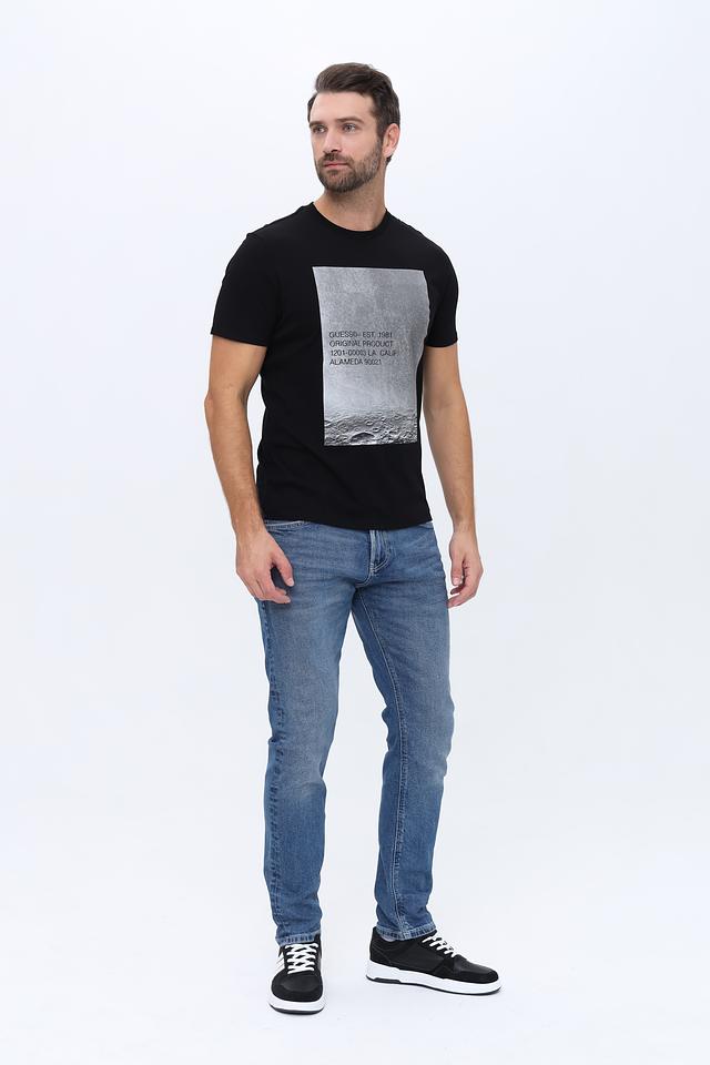 Чёрная футболка Guess с оригинальным принтом на груди. Изготовлена из 100% хлопка, обеспечивая комфорт и воздухопроницаемость. Стильный и лаконичный дизайн делает эту футболку отличным выбором для повседневного образа. Состав: хлопок 100%