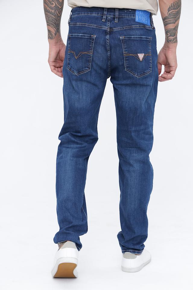 Мужские джинсы Guess классического синего цвета и прямого кроя — это универсальная модель на каждый день. Плотный деним с небольшим добавлением эластана обеспечивает комфорт и свободу движений. Состав: хлопок 84%, полиэстер 15%, эластан 1%