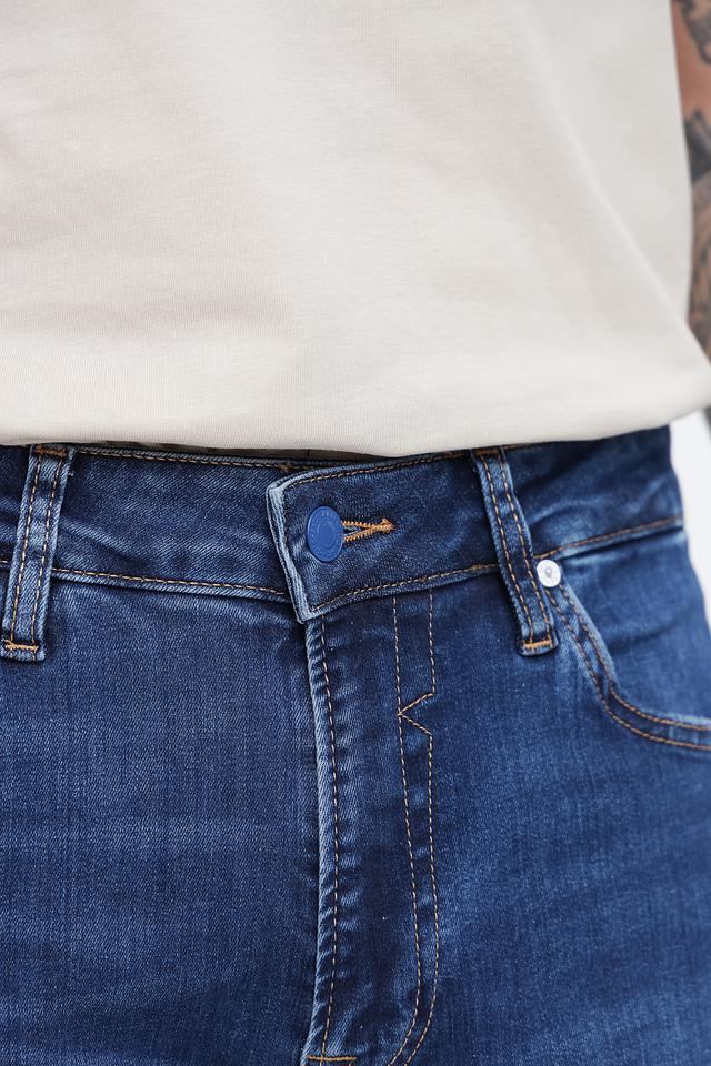 Джинсы изготовлены из высококачественного денима, состоящего из 84% хлопка, 15% полиэстера и 1% эластана. Такое сочетание материалов обеспечивает прочность, долговечность и комфорт в носке. Наличие эластана придает джинсам небольшую эластичность, что позволяет свободно двигаться.