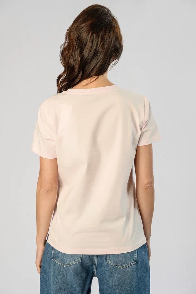 Нежно-розовый цвет футболки легко сочетается с различными элементами одежды, позволяя создавать разнообразные образы. Она идеально подходит для повседневной носки, прогулок и активного отдыха. Состав: 95% хлопок, 5% эластан.