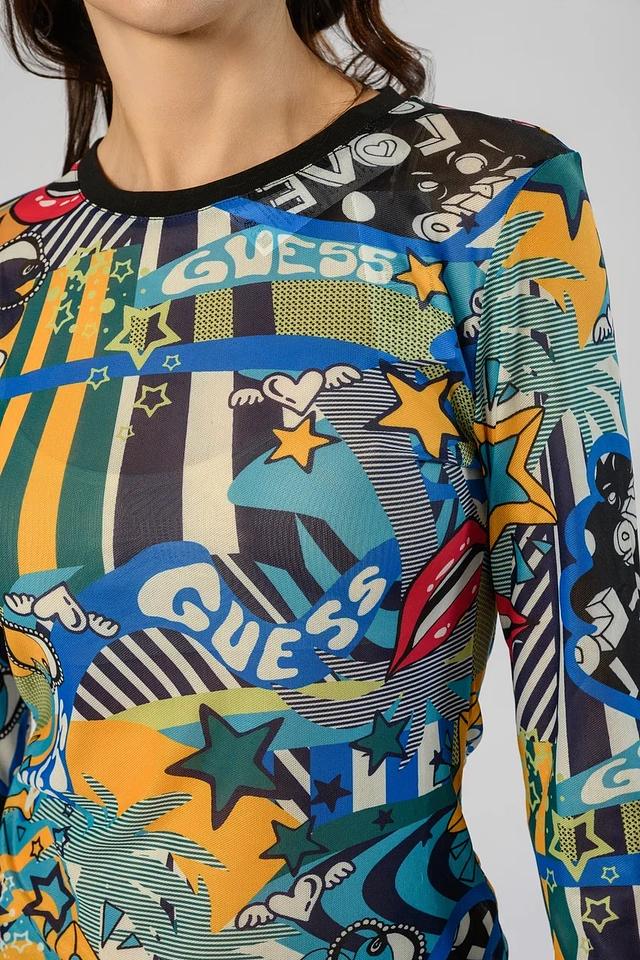 Женский лонгслив Guess разноцветного дизайна с ярким принтом и длинными рукавами. Изготовлен из мягкого полиэстера с добавлением эластана для комфортной посадки и свободы движений. Состав: полиэстер 93%, эластан 7%