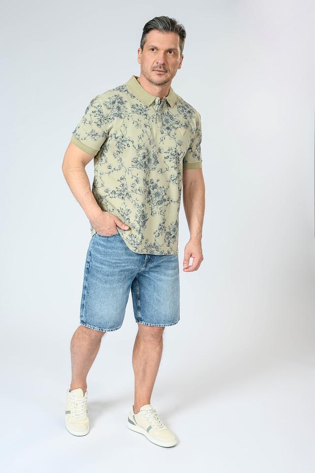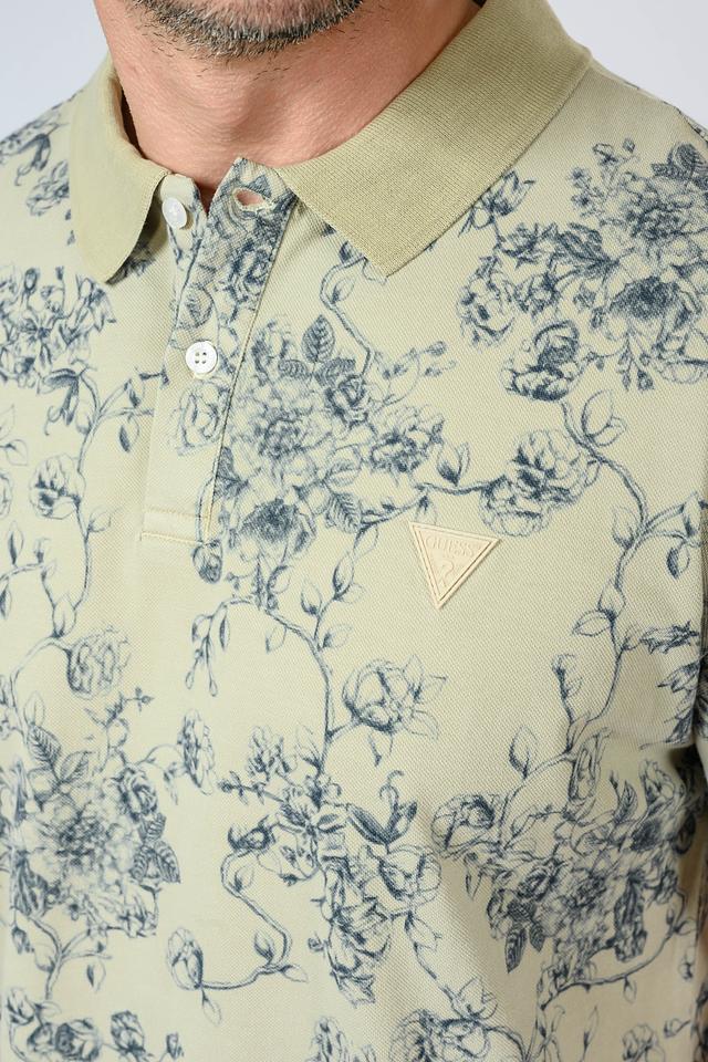Мужское поло Guess бежевого цвета с оригинальным цветочным принтом. Изготовлено из мягкого хлопка с добавлением эластана для комфорта и свободы движений. Стильный и удобный выбор для повседневного образа. Состав: хлопок 95%, эластан 5%