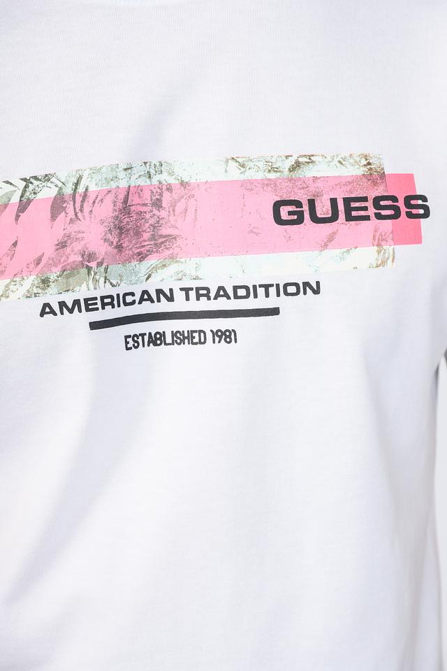Белая футболка Guess с ярким принтом – стильное дополнение к вашему образу. Изготовлена из 100% хлопка, обеспечивая комфорт в течение всего дня. Оригинальный дизайн и высокое качество. Состав: хлопок 100%