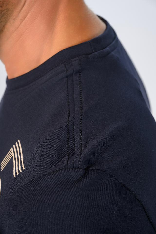 Футболка имеет классический крой и круглый вырез горловины. Материал – высококачественный хлопок (95%) с добавлением эластана (5%), что обеспечивает комфорт при носке, хорошую воздухопроницаемость и сохранение формы.