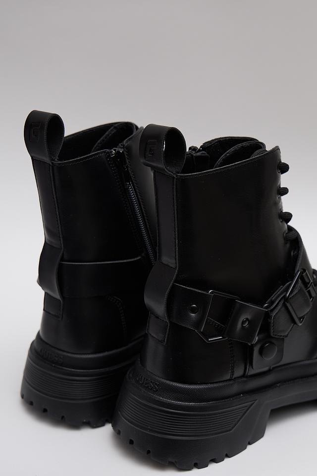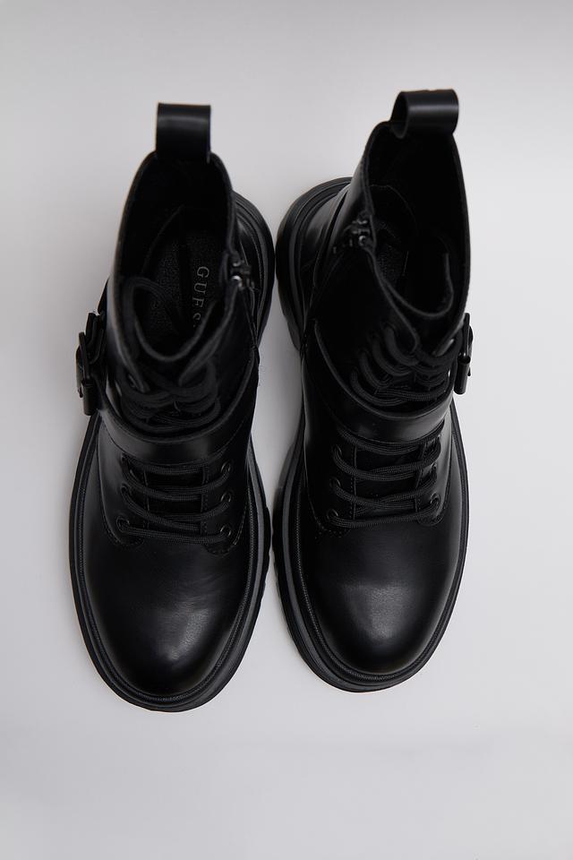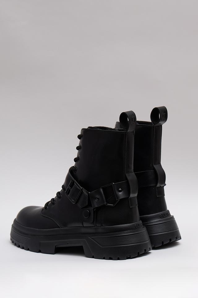 Чёрные ботинки от Guess — стильная и современная обувь на массивной платформе с декоративным ремнём с пряжкой. Модель выполнена из полиуретана, что обеспечивает долговечность и удобство в носке. Состав: полиуретан 100%