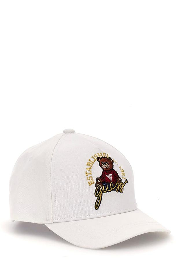 Белая бейсболка Guess для мальчиков, выполненная из 100% хлопка. Украшена вышивкой с логотипом бренда и милым медвежонком. Идеальный аксессуар для создания стильного образа. Состав: хлопок 100%