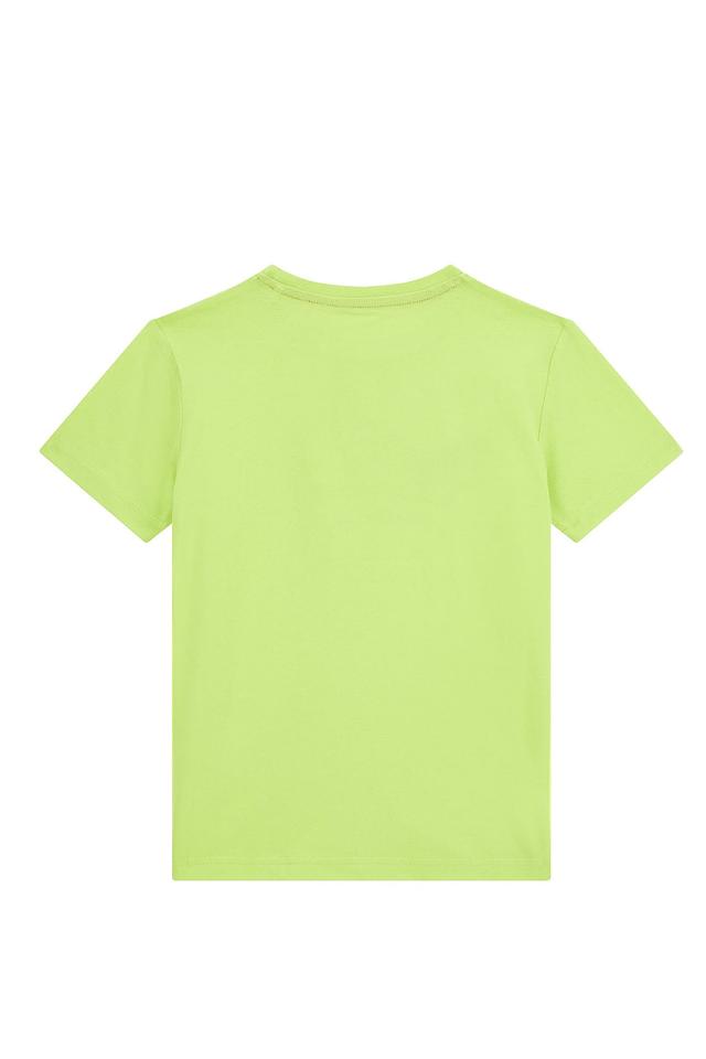 Детская футболка Guess лаймового цвета с оригинальным принтом. Изготовлена из 100% хлопка, обеспечивая комфорт и удобство в носке. Стильный и яркий вариант для юных модников. Состав: хлопок 100%