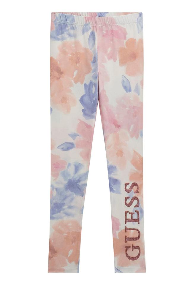 Джинсы Guess для девочек нежно-розового цвета с ярким цветочным принтом. Изготовлены из мягкого хлопка с добавлением эластана для комфорта и свободы движений. Состав: хлопок 95%, эластан 5%