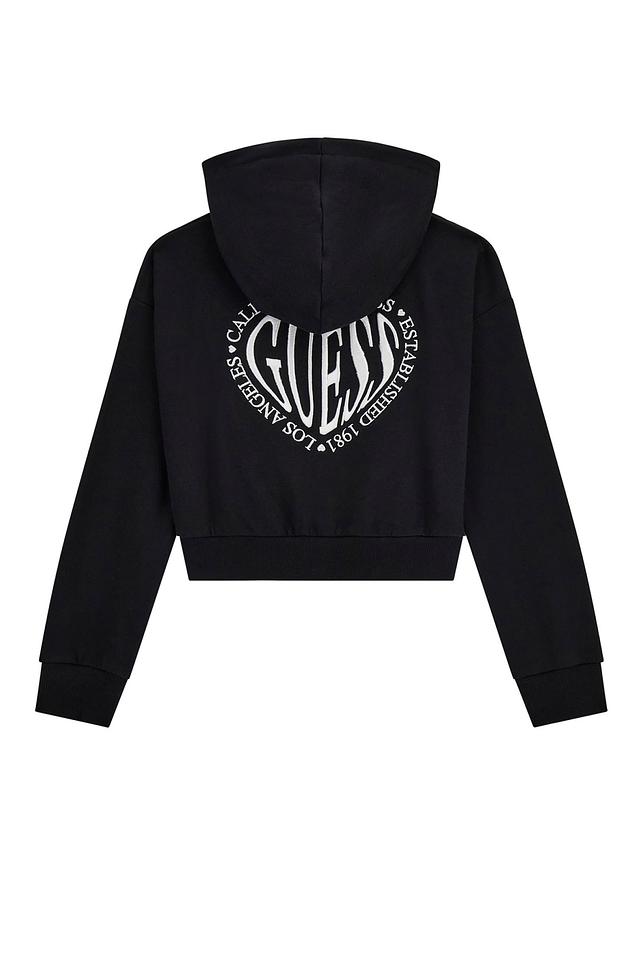 Чёрная толстовка на молнии от Guess для девочек. Изготовлена из 100% хлопка, обеспечивающего комфорт и мягкость. Украшена фирменным логотипом бренда. Состав: хлопок 100%