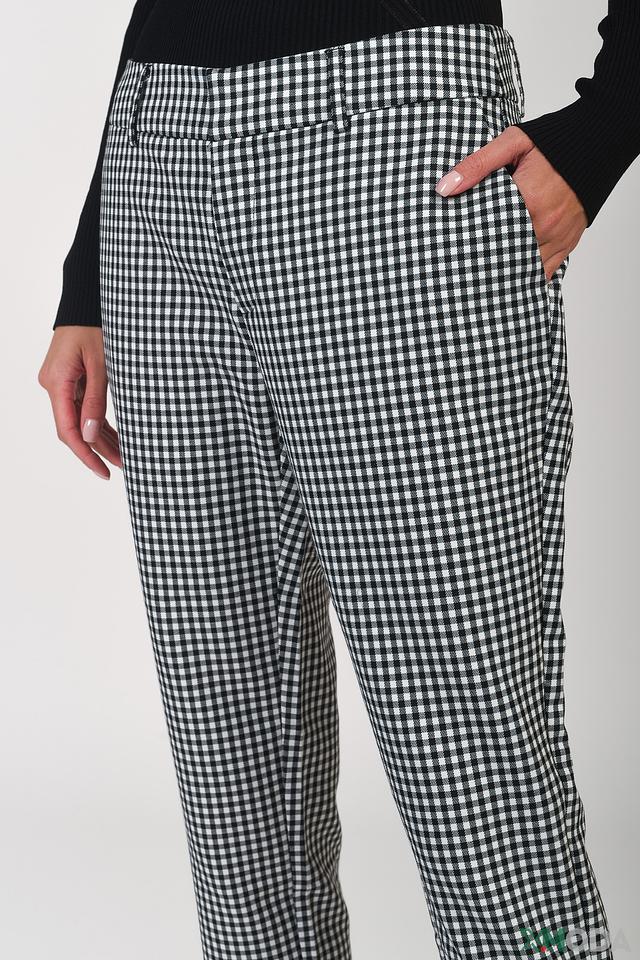 Представляем стильные брюки от бренда Guess. Эта модель выполнена в классическую чёрно-белую клетку, которая всегда актуальна и легко сочетается с различными элементами гардероба.