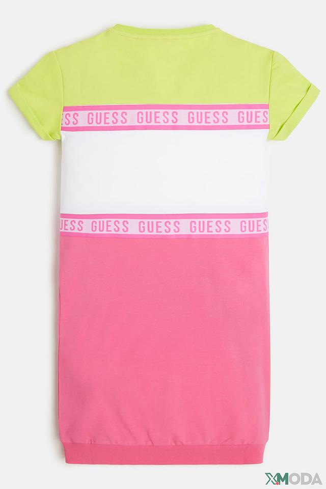 Это стильное платье от бренда Guess станет отличным выбором для юной модницы. Платье выполнено в яркой цветовой гамме, сочетающей в себе розовый, белый и лаймовый цвета.