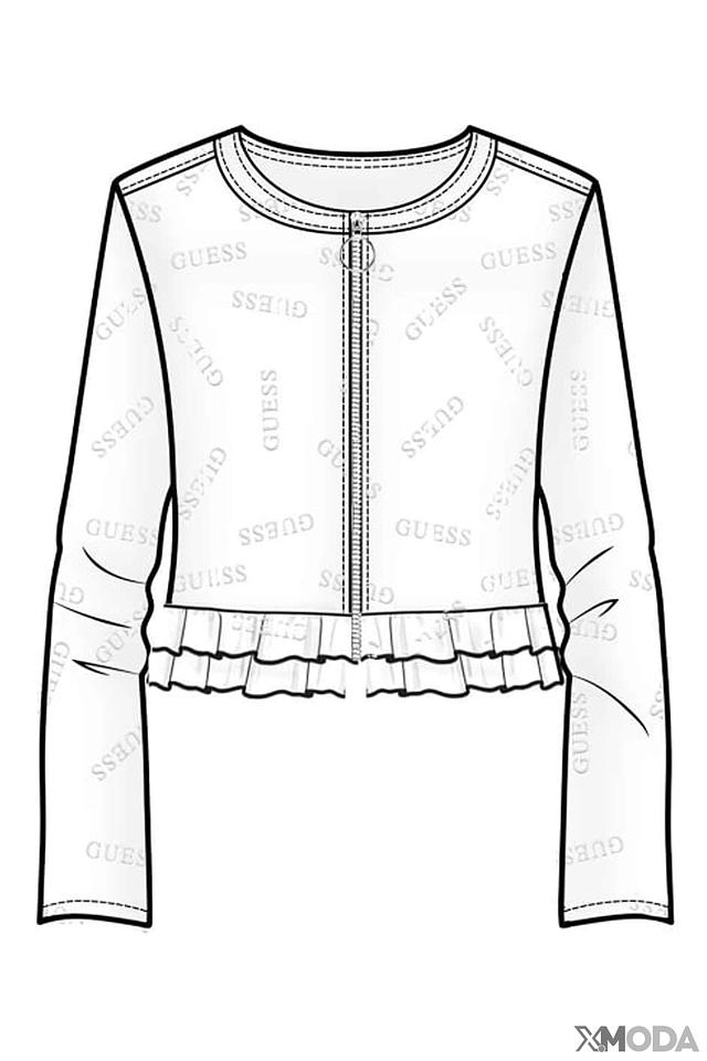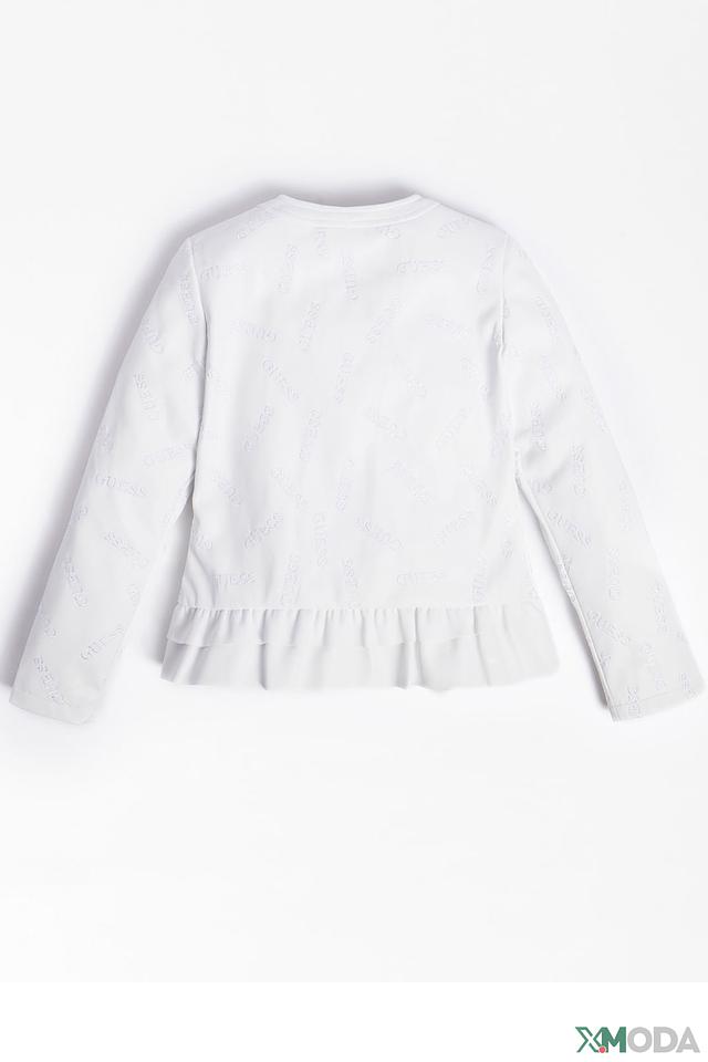 Белая куртка Guess для девочки с длинным рукавом, застежкой на молнию и декоративной оборкой. Модель выполнена из полиуретана с фирменным логотипом по всей поверхности. Состав: полиуретан 100%