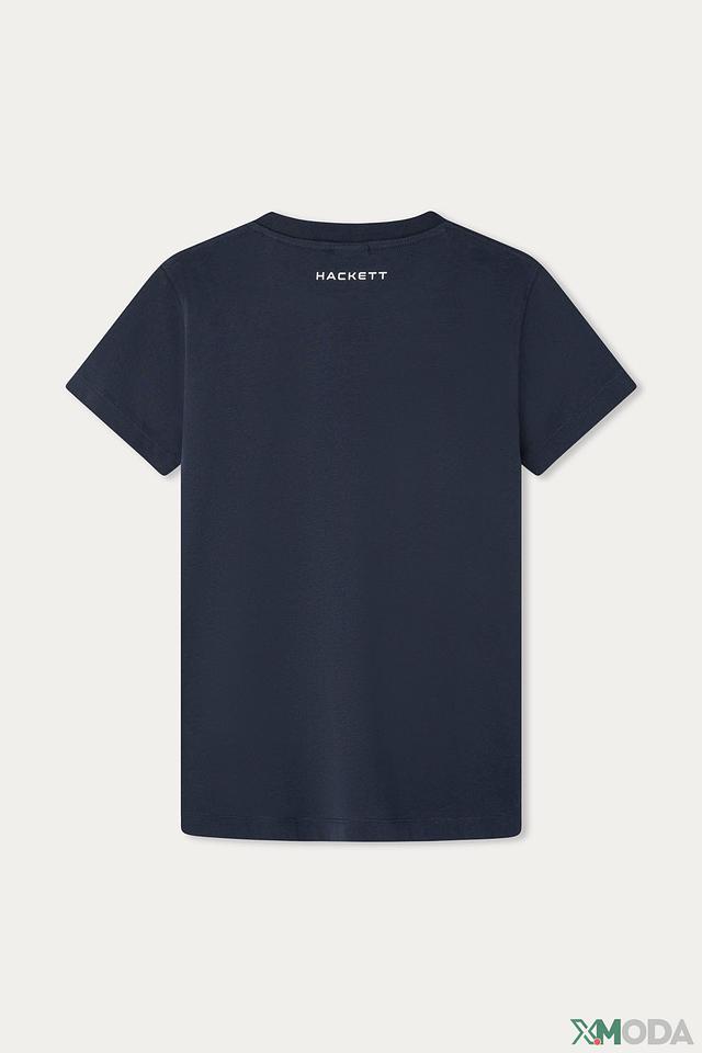 На спине футболки расположен небольшой логотип Hackett London. Эта футболка идеально подходит для повседневной носки, активного отдыха и школьных мероприятий. Она легко сочетается с джинсами, шортами или спортивными брюками.