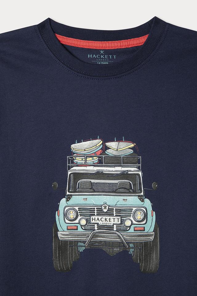 Синяя футболка Hackett London для мальчика с ярким принтом в виде ретро-автомобиля. Изготовлена из 100% хлопка, обеспечивая комфорт и удобство в носке. Стильный и оригинальный дизайн. Состав: хлопок 100%