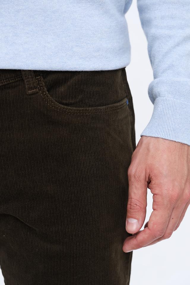 Застежка на молнии и пуговице обеспечивает надежную фиксацию. Брюки оснащены стандартными карманами – двумя боковыми и двумя задними. Вельветовая текстура придает брюкам особый шарм и элегантность.
