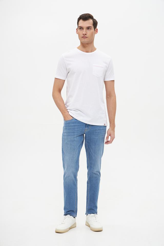 Мужские джинсы Hattric голубого цвета в стиле Slim Fit. Изготовлены из хлопка с добавлением эластана для комфорта и свободы движений. Классический пятикарманный крой. Состав: хлопок 98%, эластан 2%
