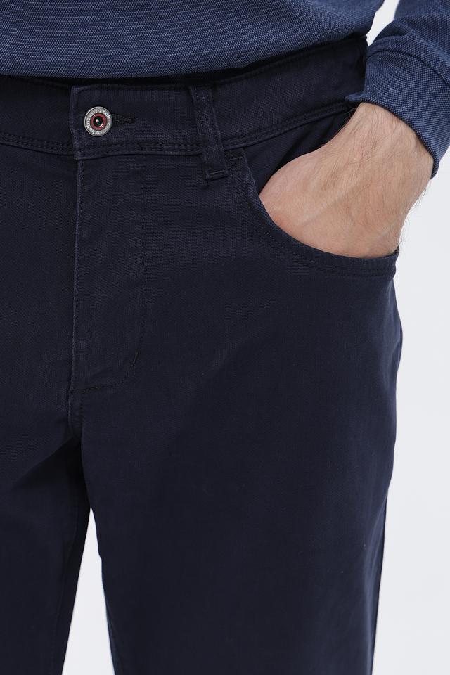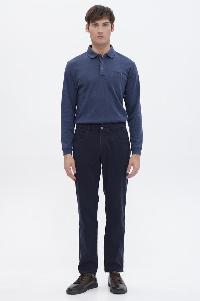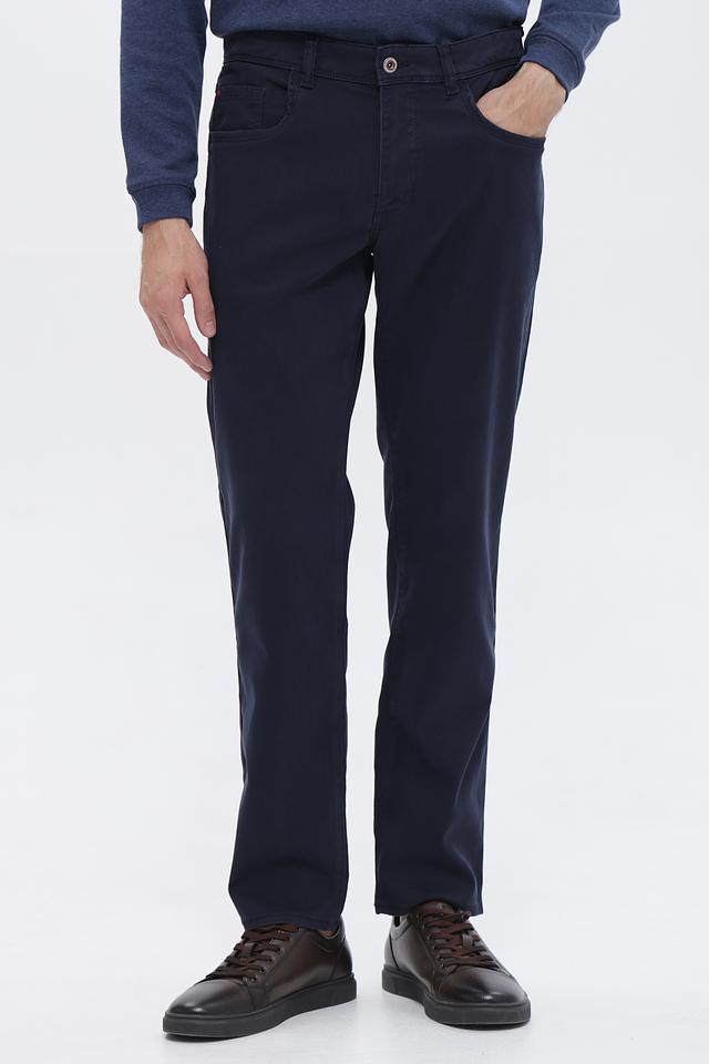 Тёмно-синий цвет делает их универсальным элементом гардероба, подходящим для создания различных образов – от делового до повседневного. Прямой крой брюк обеспечивает аккуратный силуэт, а стандартная посадка гарантирует удобство в носке.