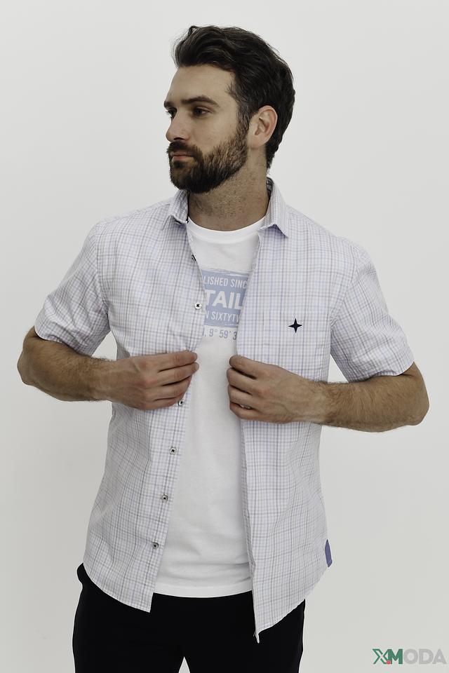 Эта рубашка от Haze and Finn станет отличным дополнением к вашему летнему гардеробу. Выполнена в светло-голубом цвете с мелким клетчатым рисунком, который придает ей свежий и стильный вид.