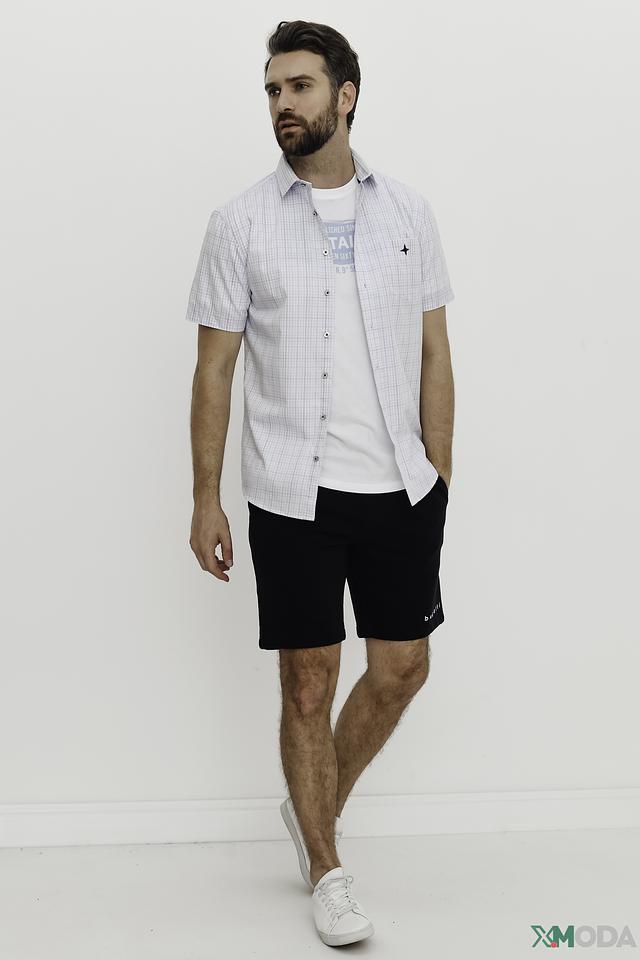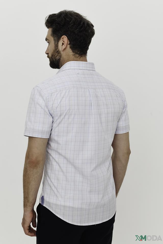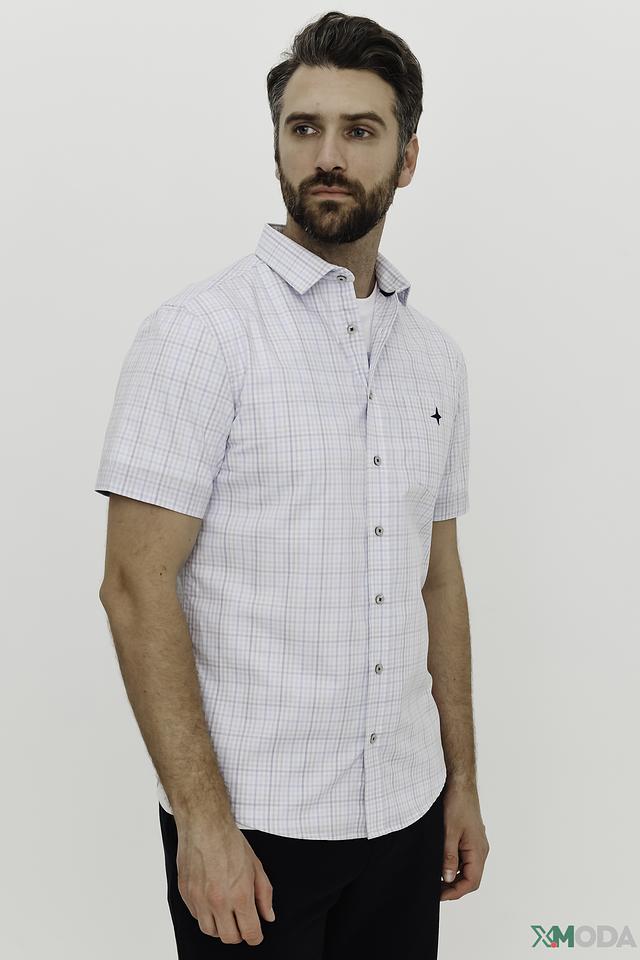 Рубашка имеет классический крой с короткими рукавами и воротником на пуговицах. Небольшой логотип бренда расположен на груди, добавляя акцент. Изготовлена из высококачественного хлопка с добавлением эластана (92% хлопок, 8% эластан), что обеспечивает комфорт при носке и хорошую посадку по фигуре.