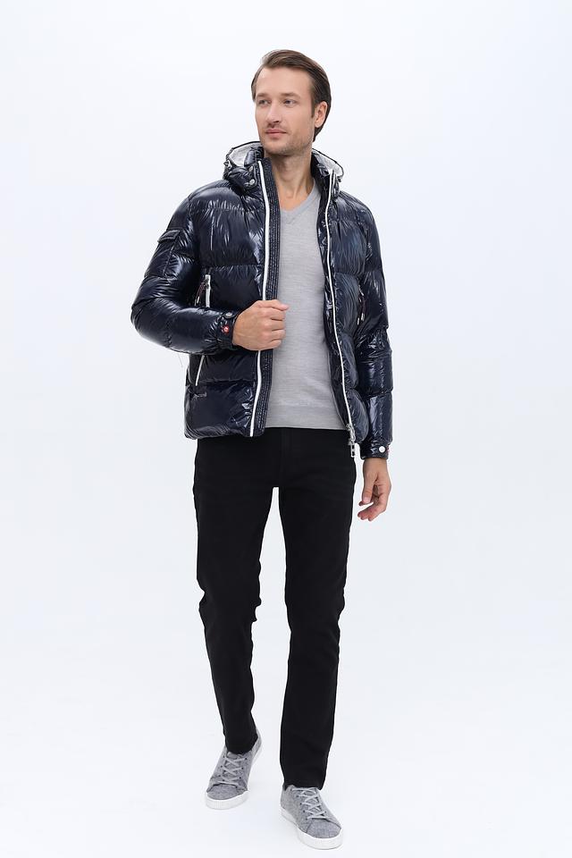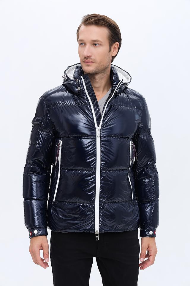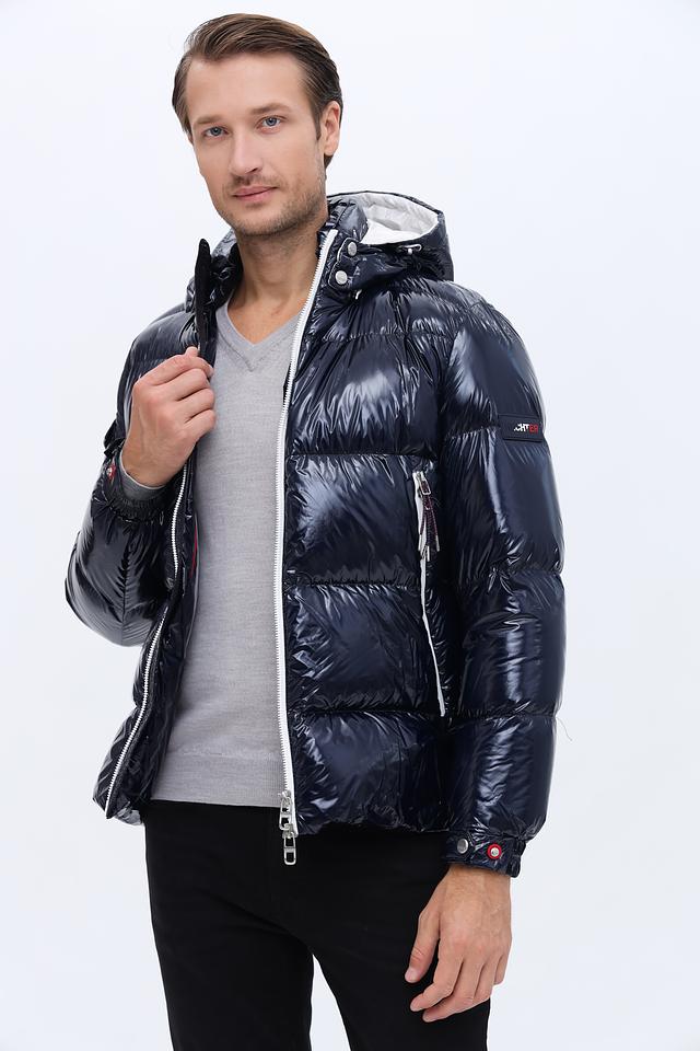 Стильная мужская куртка Hechter синего цвета с глянцевой поверхностью и белыми вставками. Модель с капюшоном и застежкой-молнией станет отличным выбором для прохладной погоды. Состав: полиамид 100%, Состав_подкладка полиамид 100%, Состав_наполнитель 90%