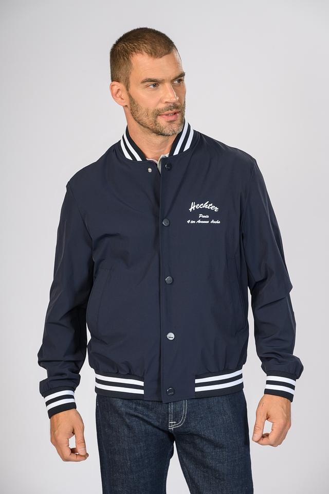 Дизайн куртки дополнен контрастной белой полосой на манжетах и по низу изделия. На груди расположена вышивка с логотипом бренда Hechter Paris. Эта ветровка станет отличным дополнением к вашему гардеробу и подойдет для различных погодных условий.