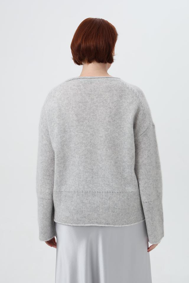 Серый пуловер от Herzens Angelegenheit из мягкого кашемира и хлопка. Модель с округлым вырезом и свободным кроем станет отличным дополнением к вашему гардеробу. Состав: кашемир 63%, хлопок 37%